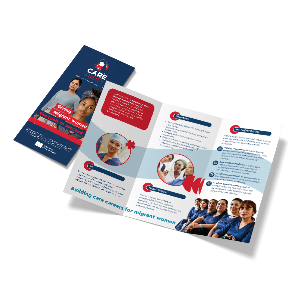 Here you can find all the materials created within CARE-ABILITY — from posters and brochures to newsletters and promotional videos. They share the project’s journey, results, and impact across Europe, and can be freely used for learning or dissemination.